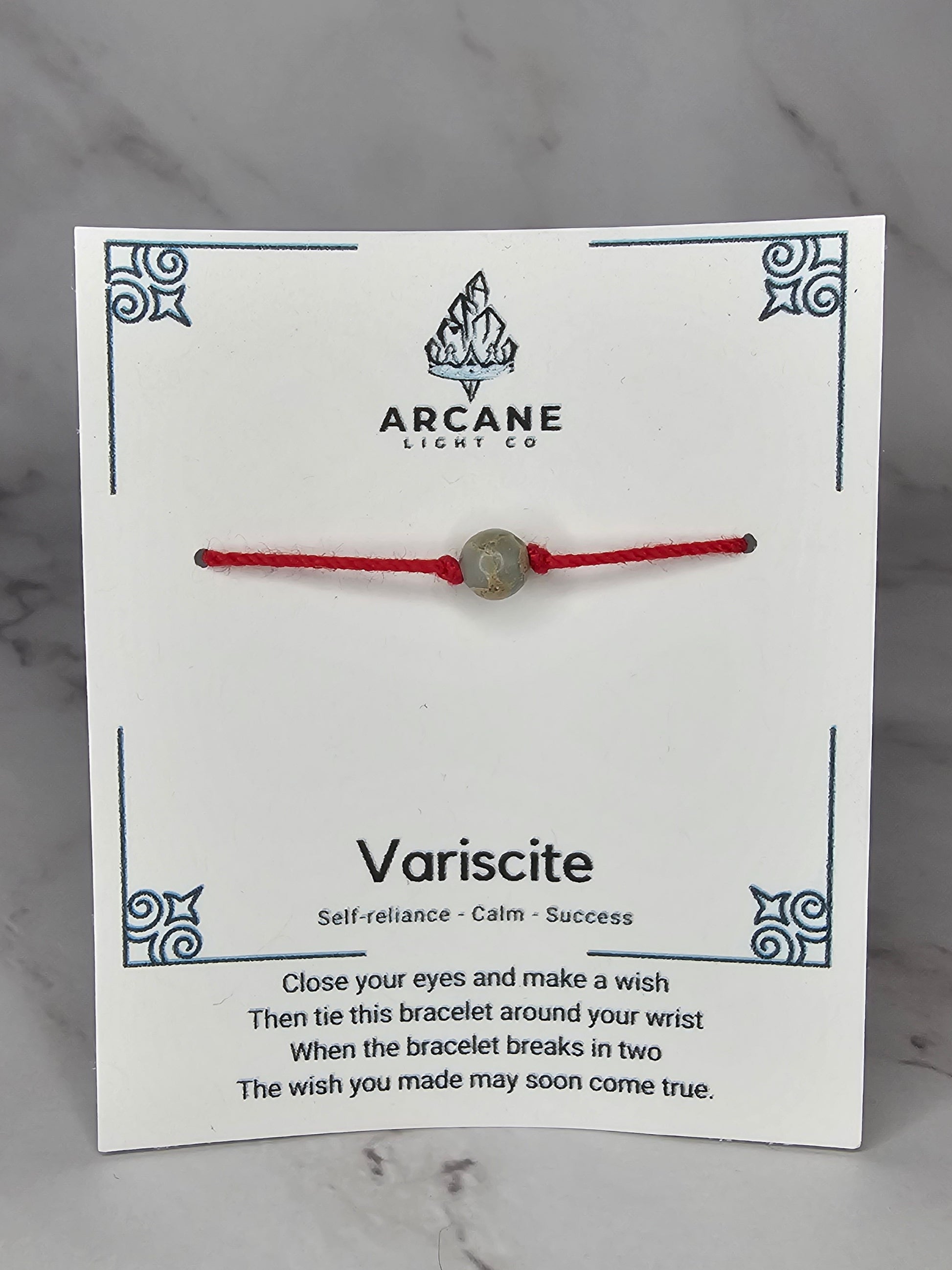 Wish Bracelets have been around for some time. The only thing I did here was decide on how to give wish bracelets an extra boost. Crystals were of course my go to. Each crystal has an individual vibration that works differently. In this case I've selected a few of what I think are the best goal oriented crystals that would be the best to wish on.