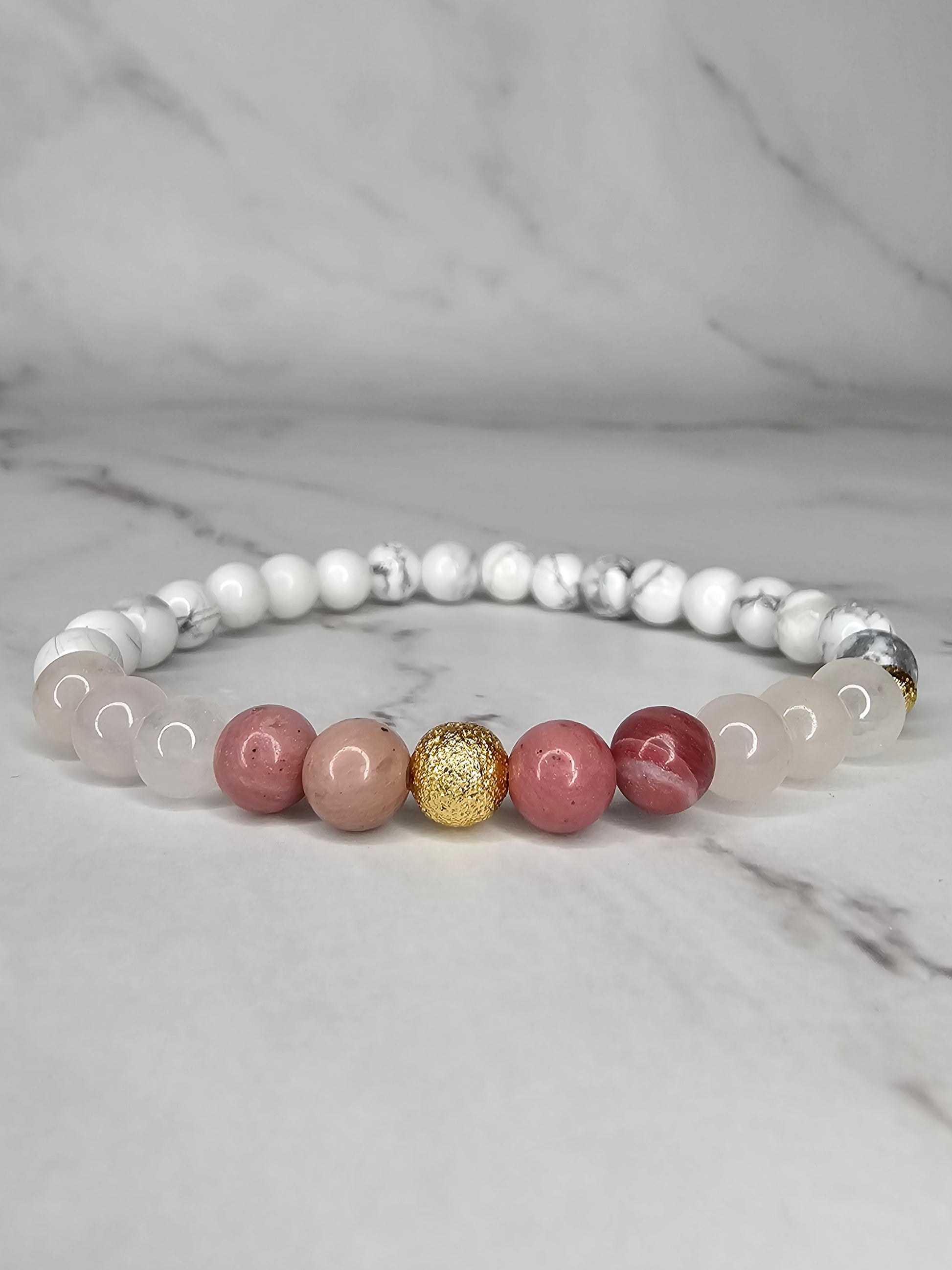 Kiss of Eros - Self Love Crystal Bracelet - Howlite, Rose Quartz and Moonstone