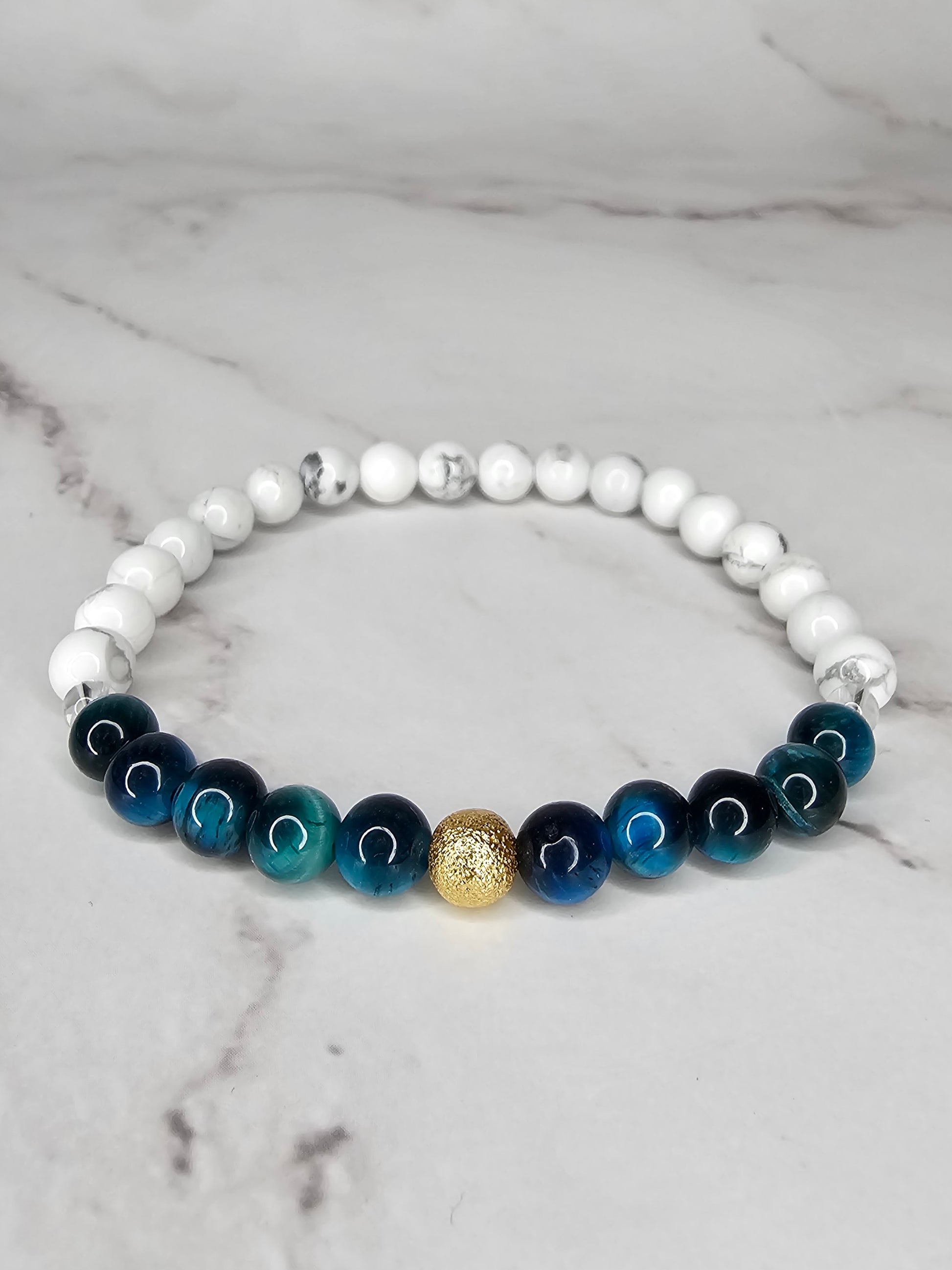 Howlite relieves stress and helps to calm an overactive mind. This crystal was added to help allow the wearer to not be overwhelmed by the changes that are being brought on by this manifestation.